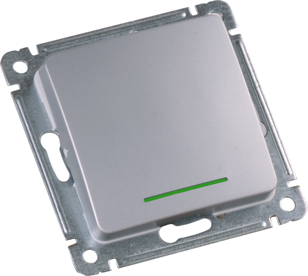 Выключатель скрытой установки, одноклавишный, с индикацией, самовозвратом, механизм, цвет серебро | ВС10-432-06 HEGEL