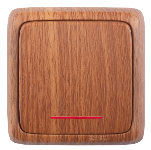 Выключатель одноклавишный наружный с изоляционной пластиной индикацией дуб 10А - ВА10-114-05 HEGEL