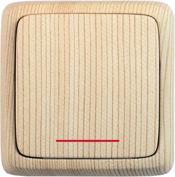 Выключатель одноклавишный наружный с изоляционной пластиной индикацией сосна 10А - ВА10-114-02 HEGEL
