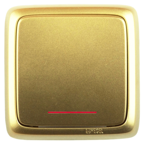 Выключатель одноклавишный наружный с изоляционной пластиной индикацией золото 10А - ВА10-114-07 HEGEL