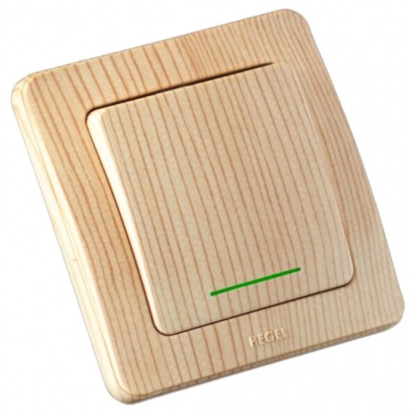 Выключатель одноклавишный скрытый с индикацией сосна 10А - ВС10-312-02 HEGEL