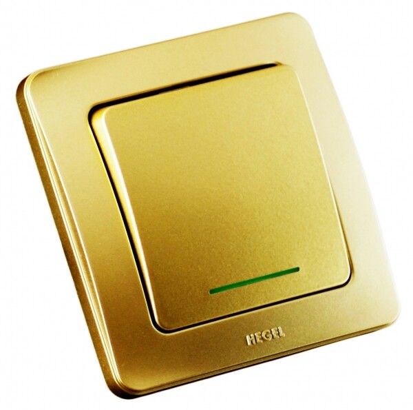Выключатель скрытой установки одноклавишный с индикацией 10А 250В цвет золото от бренда HEGEL (артикул вс10-312-07) предназначен для коммутации освещения и бытовых нагрузок до 10 А в помещениях с нормальными условиями эксплуатации.