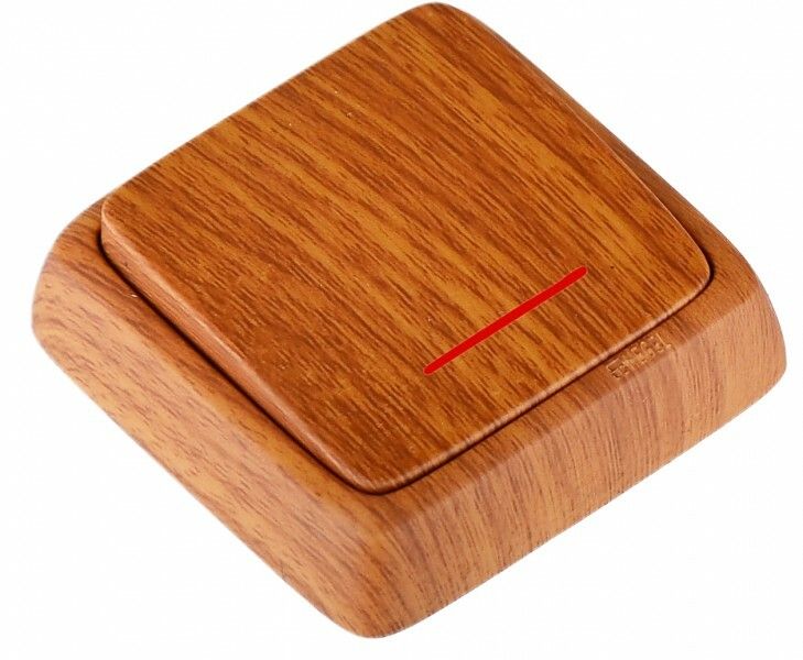 Выключатель одноклавишный наружный с изоляционной пластиной индикацией дуб 16А - ВА16-114-05 HEGEL