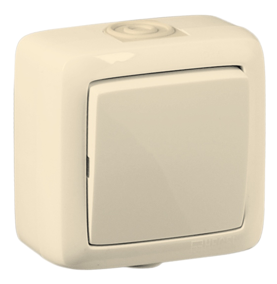 Выключатель одноклавишный наружный слоновая кость IP44 10А - ВА10-211-01 HEGEL