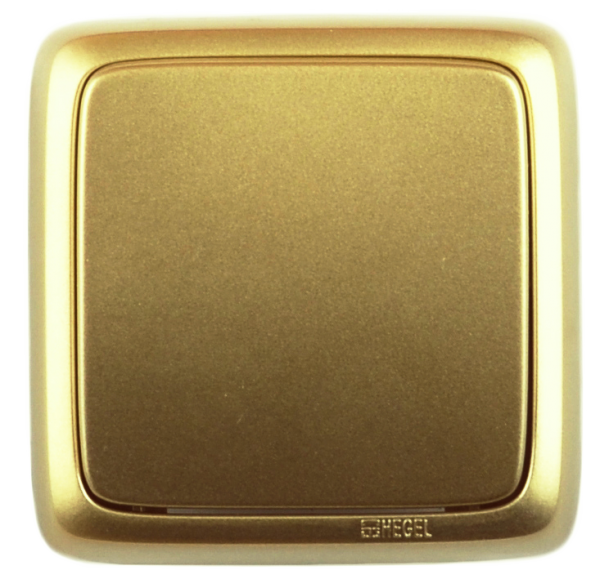 Выключатель одноклавишный наружный с изоляционной пластиной золото 10А - ВА10-113-07 HEGEL