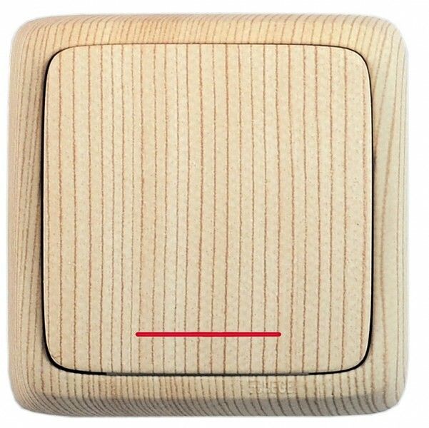 Выключатель одноклавишный наружный с изоляционной пластиной индикацией сосна 16А - ВА16-114-02 HEGEL