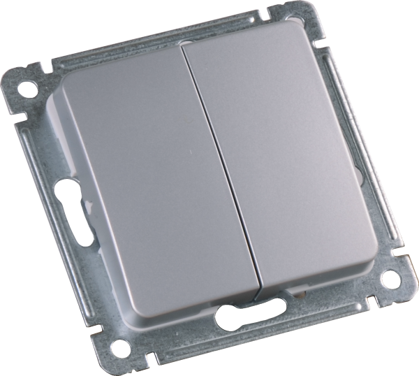 Выключатель скрытой установки, двухклавишный, механизм, цвет серебро | ВС10-451-06 HEGEL