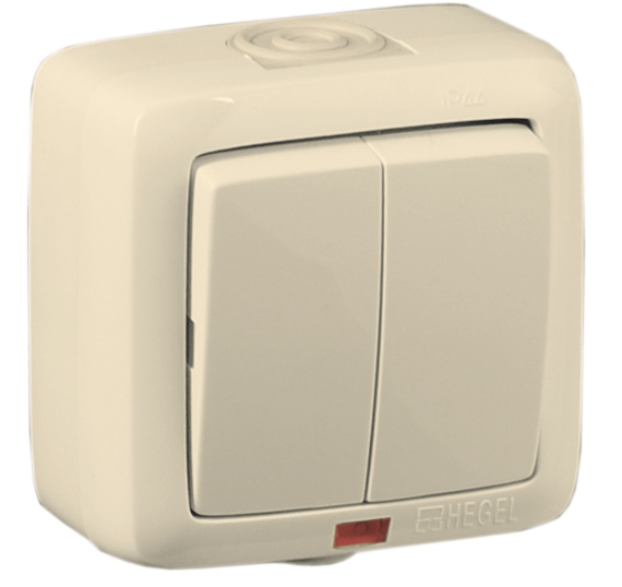 Выключатель двухклавишный наружный с индикацией слоновая кость IP44 10А - ВА10-252-01 HEGEL