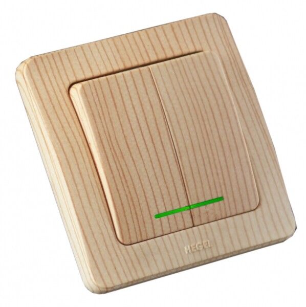 Выключатель двухклавишный скрытый с индикацией сосна 10А - ВС10-352-02 HEGEL