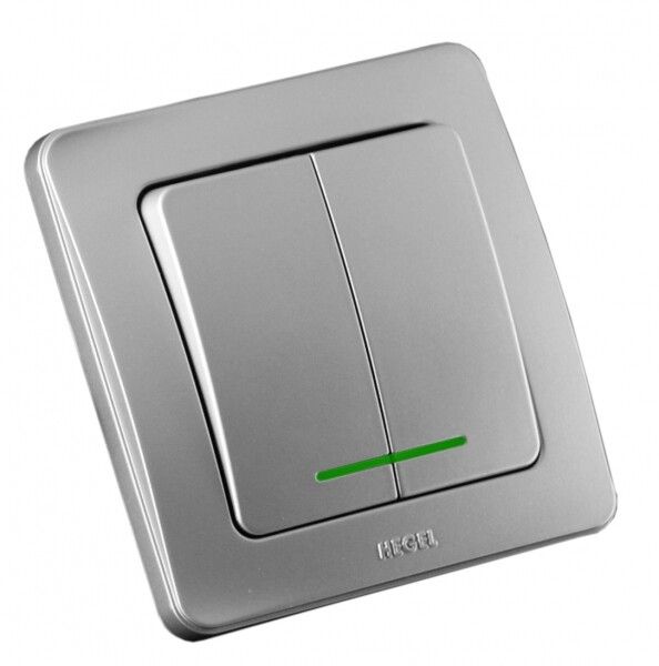 Выключатель двухклавишный скрытый с индикацией серебро 10А - ВС10-352-06 HEGEL