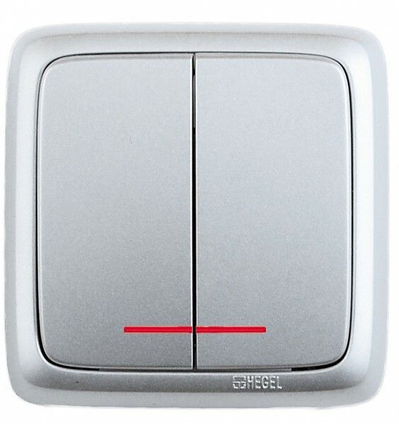 Выключатель двухклавишный наружный с изоляционной пластиной индикацией серебро 16А - ВА16-154-06 HEGEL