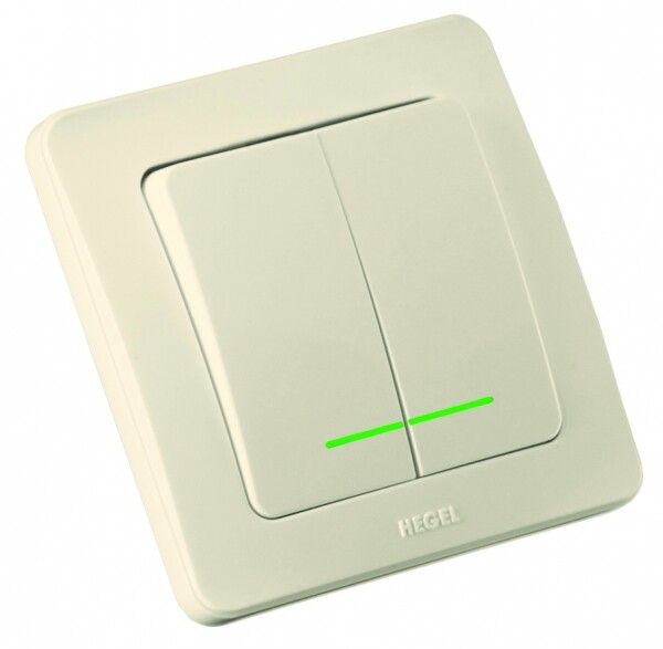 Выключатель двухклавишный скрытый с индикацией слоновая кость 16А - ВС16-352-01 HEGEL
