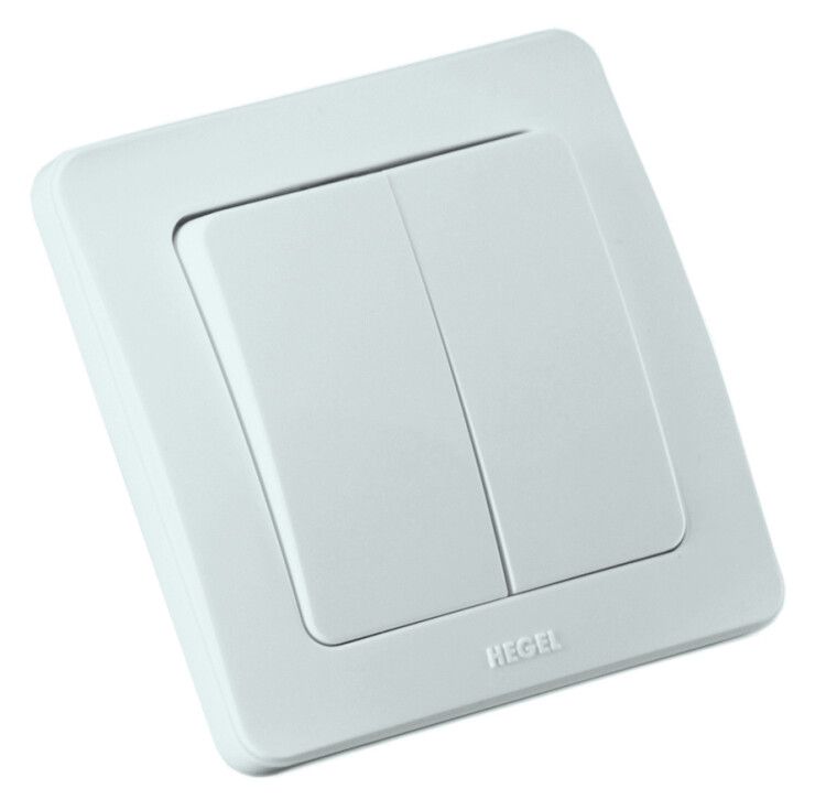 Выключатель двухклавишный скрытый белый 10А - ВС10-351 HEGEL