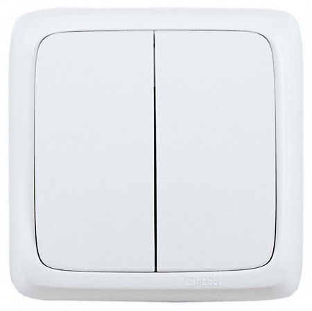 - Выключатель двухклавишный наружный 16А 250В белый от HEGEL (ва16-151) лучше выбирать в паре с аналогичными розетками из той же серии - так будет единый стиль оформления