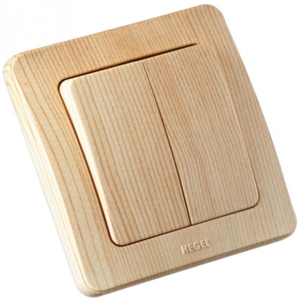 Выключатель скрытой установки двухклавишный 16А 250В цвет сосна от бренда HEGEL (артикул вс16-351-02) предназначен для коммутации освещения и бытовых нагрузок в помещениях с контролируемой средой. Устройство отличается натуральной деревянной отделкой и надёжным винтовым подключением, что делает его подходящим решением для интерьеров в классическом или современном стиле.