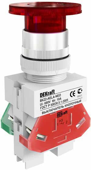 Выключатель кнопочный "Грибок" AELA ВК-22 d22мм 220В неон красн. DEKraft 25030DEK APC