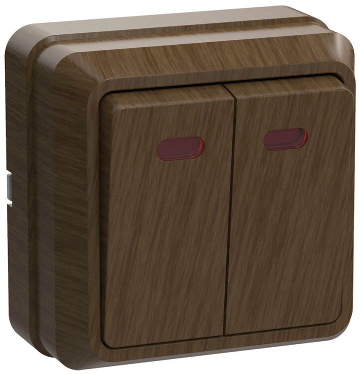 Выключатель двухклавишный с индикацией ВС20-2-1-ОД дуб от GENERICA - устройство для управления двумя осветительными или бытовыми нагрузками в одной точке. Благодаря встроенной индикации и надёжной конструкции, он удобен для монтажа на открытую проводку в жилых и общественных помещениях.