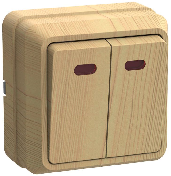 Выключатель двухклавишный наружный с индикацией 10А ВС20-2-1-ОС сосна используется для включения и выключения двух отдельных групп светильников, вентиляторов, розеток или других однополюсных устройств в сети переменного тока 250 В, 50 Гц. Подходит для установки в жилых домах, офисах, подъездах, на лестничных площадках и других местах, где требуется управление несколькими нагрузками из одной точки. Индикация позволяет легко определить состояние выключателя даже в темноте.