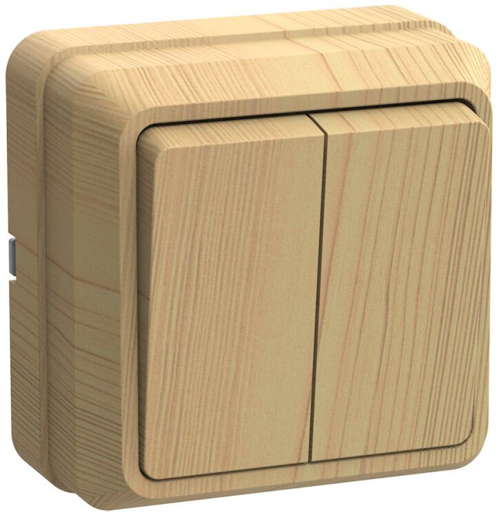 Выключатель двухклавишный открытого монтажа 10А IP20 сосна ВС20-2-0-ОС от IEK (ИЭК) предназначен для удобного управления двумя осветительными или бытовыми нагрузками в помещениях с сухим микроклиматом. Артикул ВС20-2-0-ОС входит в серию OKTAVA и сочетает надёжную механическую конструкцию с эстетичной деревянной отделкой.