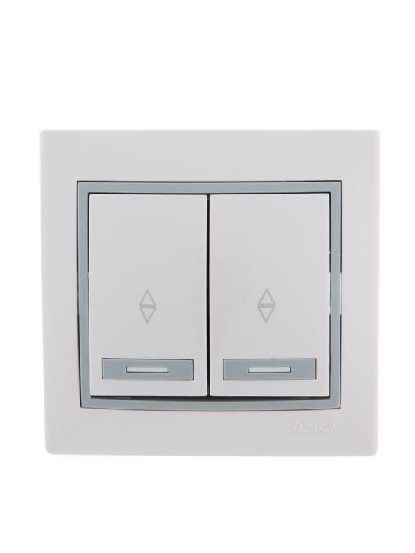 Переключатель проходной 2-клавишный 10А с серой вставкой белый от бренда Lezard, артикул 701-0215-106, предназначен для управления освещением из двух мест - например, на лестнице, в длинном коридоре или спальне. Серия MIRA обеспечивает надёжную работу в бытовых условиях благодаря прочному корпусу и совместимости со стандартными рамками.