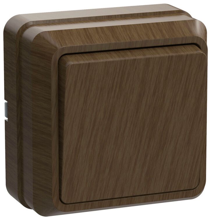 Выключатель одноклавишный открытого монтажа 10А IP20 ВС20-1-0-ОД дуб используется для включения и отключения одного электроприёмника - например, светильника, вытяжки или розетки - в сети переменного тока 220 В, 50 Гц. Подходит для установки на стенах в жилых комнатах, коридорах, офисах и других закрытых помещениях с невысокой влажностью. Открытый монтаж позволяет устанавливать устройство без штробления стен - идеально для ремонта, временных объектов или деревянных конструкций.