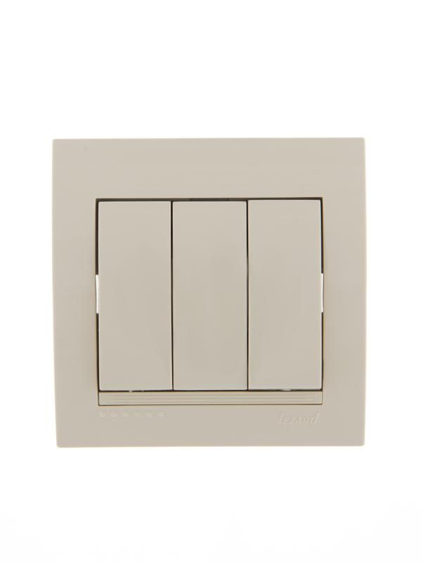 Выключатель 3-кл. СП Дери крем./крем. Lezard 702-0303-109