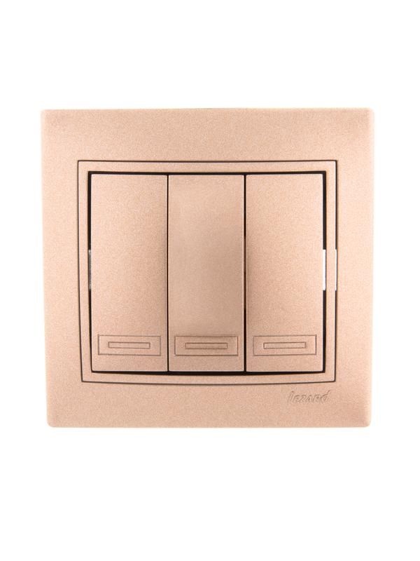 Выключатель 3-клавишный Lezard 701-3131-109 - компактное устройство для управления несколькими группами освещения в одной точке. Подходит для скрытой установки в стену, надёжно работает в бытовых и легкопромышленных условиях при напряжении до 250 В.