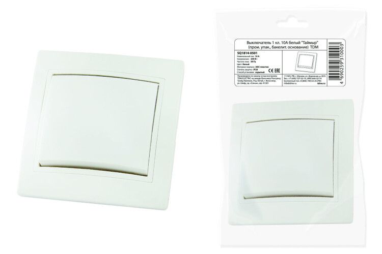 Выключатель одноклавишный 10А белый (промышленная упаковка, бакелитовое основание) от TDM ELECTRIC - надёжное решение для управления освещением в жилых и общественных помещениях. Устройство выполнено из термопласта, совместимо со скрытой проводкой и рассчитано на работу с нагрузкой до 10 А при напряжении до 30 В.