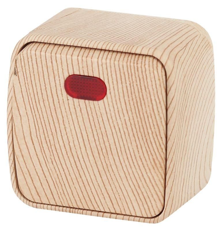Выключатель одноклавишный наружный (открытой установки) с подсветкой сосна 10А 250В винтовые зажимы Intro Polo 3-102-11 - Б0036103 ЭРА