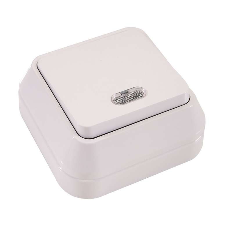 Выключатель одноклавишный наружный белый с подсветкой - 45121 Makel