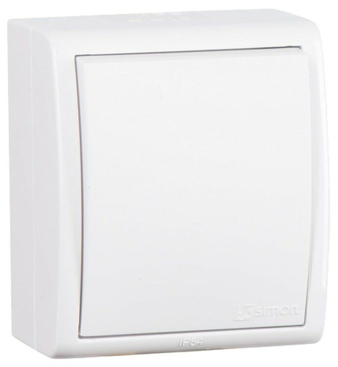 Выключатель одноклавишный Simon 1594101-030 - надёжный коммутационный аппарат для управления освещением в помещениях с повышенной влажностью или на улице. Благодаря защите IP54 и прочному пластиковому корпусу, он подходит как для внутренней, так и для наружной установки.