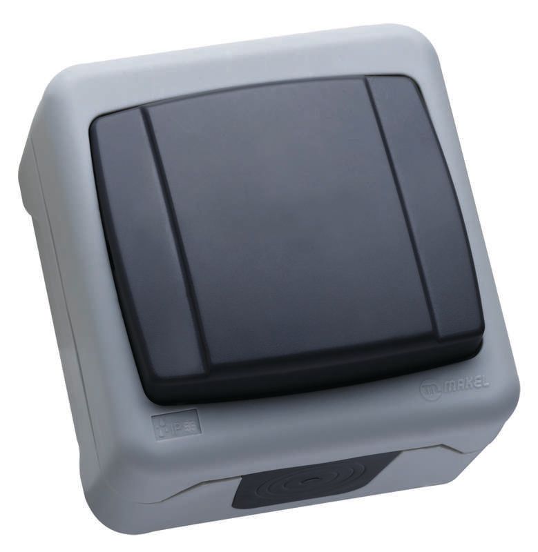 Выключатель одноклавишный IP55 герметичный серый (пружинный зажим) - 36064101 Makel