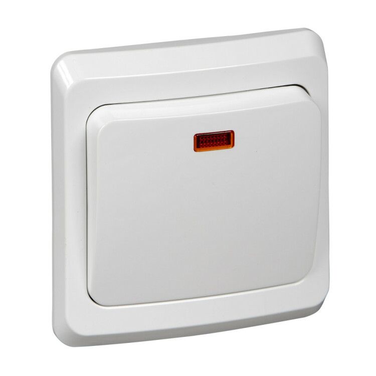 Выключатель одноклавишный скрытого монтажа с подсветкой белый 10А IP20 предназначен для коммутации осветительных нагрузок в бытовых и административных помещениях. Подходит для управления точечными светильниками, бра, потолочными лампами, люминесцентными и светодиодными источниками света. Устанавливается в стеновые коробки, используется там, где важно быстро найти выключатель ночью - спальни, коридоры, лестницы, туалеты.