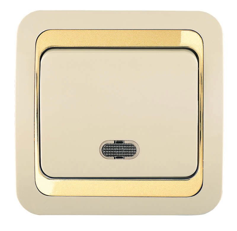Выключатель 1-кл. СП Mimoza 10А IP20 с подсветкой крем./зол. Makel 12621