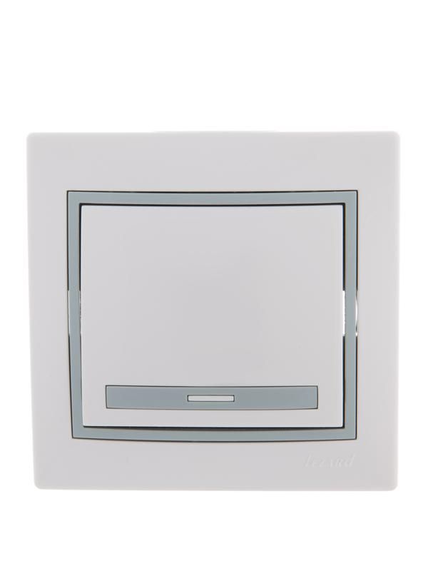 Выключатель 1-кл. СП Mira 10А IP20 с сер. вставкой бел. LEZARD 701-0215-100