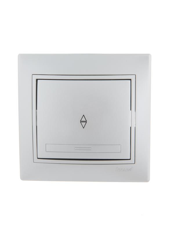 Переключатель проходной 1-кл. СП Mira 10А IP20 со вставкой сер. метал. LEZARD 701-1010-105