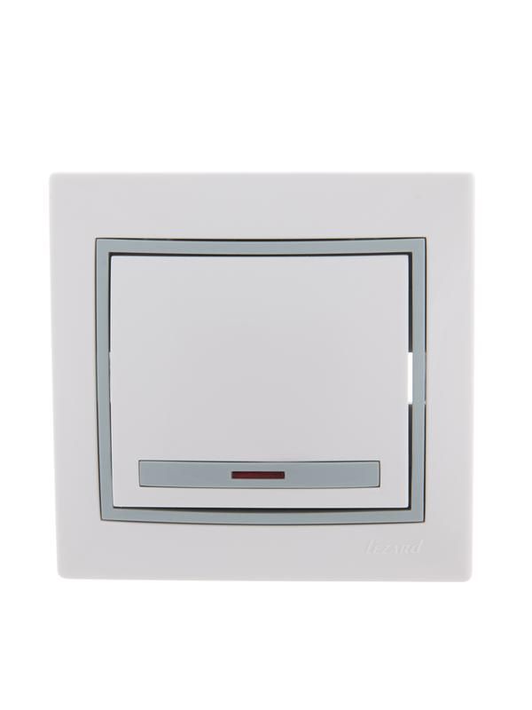 Выключатель 1-кл. СП Mira 10А IP20 с подсветкой сер. вставкой бел. LEZARD 701-0215-111