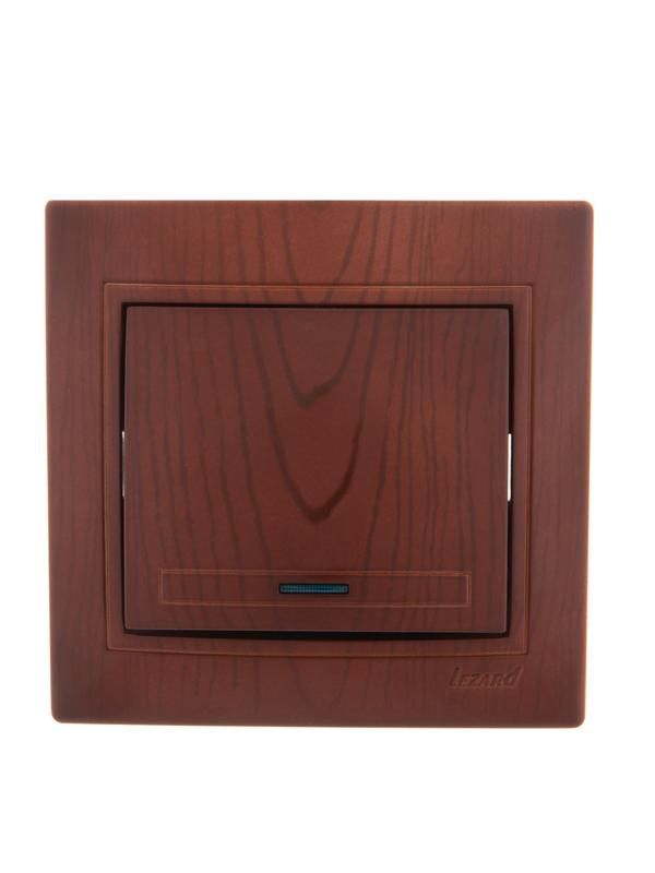 Выключатель одноклавишный с подсветкой вишня 10А от Lezard (арт. 701-0601-111) предназначен для безопасного включения и отключения света в помещениях с использованием классической клавишной системы и удобной ночную подсветку.
