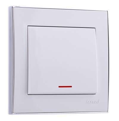 Выключатель одноклавишный с подсветкой белый с хромированной боковой вставкой 10А IP20 от Lezard - надёжное решение для управления освещением в жилых и офисных помещениях. Артикул 703-0225-111 из серии RAIN сочетает простую эксплуатацию, мягкую индикацию и элегантный дизайн, подходящий для скрытой установки.