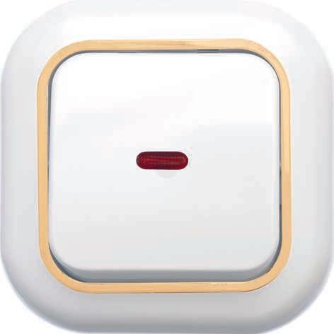 - Для многоквартирных домов выбирайте этот выключатель 1-клавишный с индикацией белый/золотой 10А IP20 С16-068, когда важна визуальная ясность и стиль