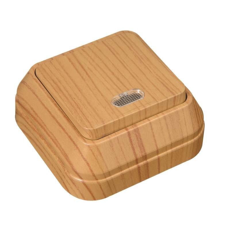 Выключатель одноклавишный наружный с подсветкой дуб - 45321 Makel