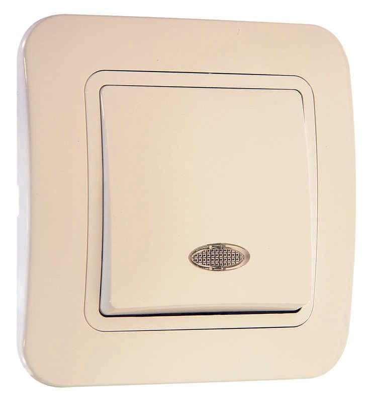 Выключатель 1-кл. СП Lillium 10А IP20 с подсветкой крем. /крем. Makel 70221