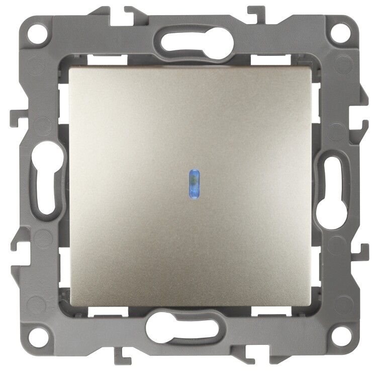 Выключатель одноклавишный скрытого монтажа с подсветкой шампань 10А 250В автоматические (безвинтовые) ЭРА 12 12-1102-04 - Б0014636