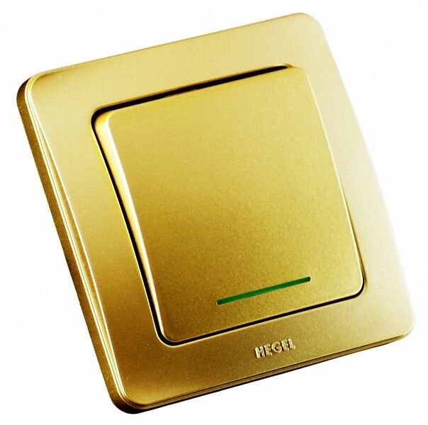 Выключатель скрытой установки, одноклавишный, с индикацией, самовозвратом, цвет золото | ВС10-332-07 HEGEL