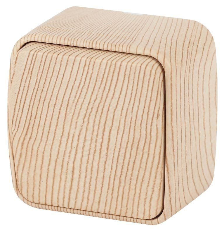 Выключатель 1-клавишный серии 3-101-11 бренда Intro - простое и надёжное решение для управления светом в помещениях с открытой проводкой. Материал корпуса имитирует натуральную сосну, что делает его подходящим для интерьеров в деревянной стилистике, а степень защиты IP20 обеспечивает безопасную работу в сухих условиях.