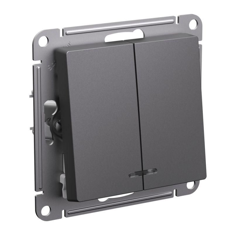 Выключатель 2-кл. AtlasDesign (сх. 5а) 10AX с подсветкой механизм базальт SE ATN001453 APC