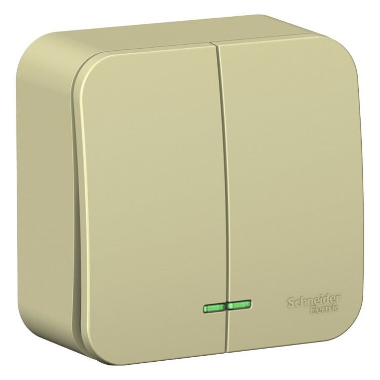 Выключатель открытой установки двухклавишный схема 5 с подсветкой 10А 250В с изолирующей пластиной бежевый - это надежное устройство от Systeme Electric (бренд SE (Потенциал)), артикул blnva105117, предназначено для управления двумя группами освещения с одной точки. Подходит для открытой проводки в жилых и общественных помещениях.