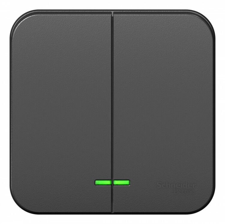 Выключатель Systeme Electric BLANCA (арт. blnva105106) - двухклавишный наружный выключатель с подсветкой, предназначенный для управления двумя группами освещения в помещениях с ограниченной видимостью. Устройство выполнено в матовом антрацитовом исполнении, рассчитано на работу в сетях до 250 В и током до 10 А.