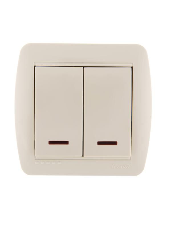 Выключатель двойной с подсветкой 10А IP20 кремовый от бренда Lezard, артикул 711-0300-112, предназначен для коммутации освещения в жилых и офисных помещениях. Относится к серии DEMET и отличается компактной конструкцией, удобной индикацией и надежным винтовым креплением.