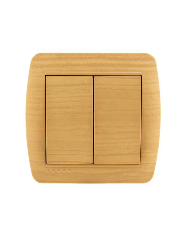 - Выбирайте этот выключатель, если нужна эстетика «натурального дерева» - он лучше впишется в интерьер, чем белые модели